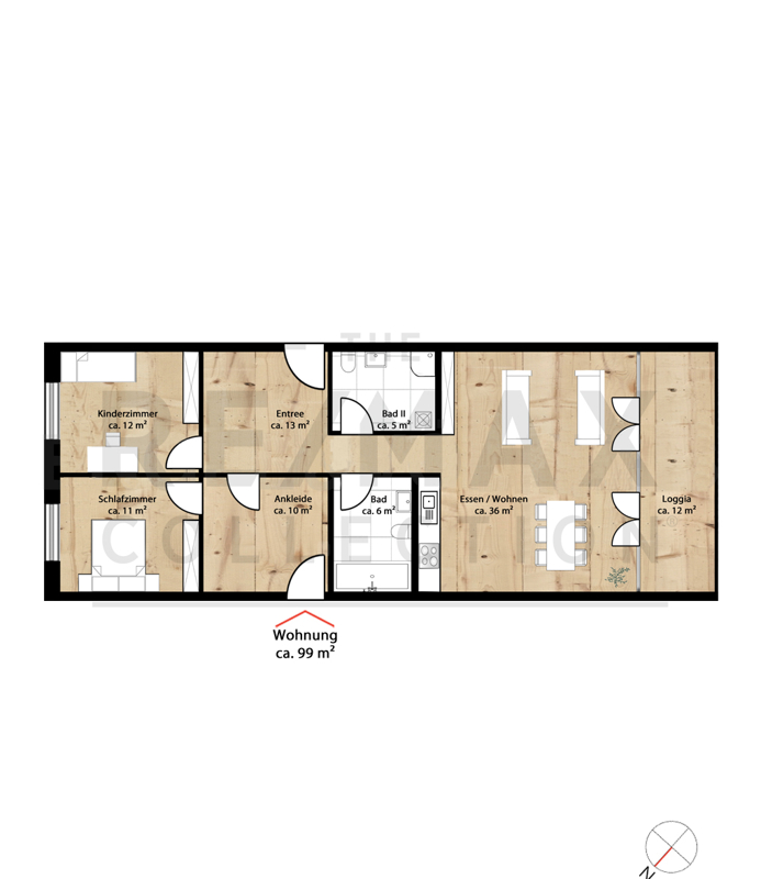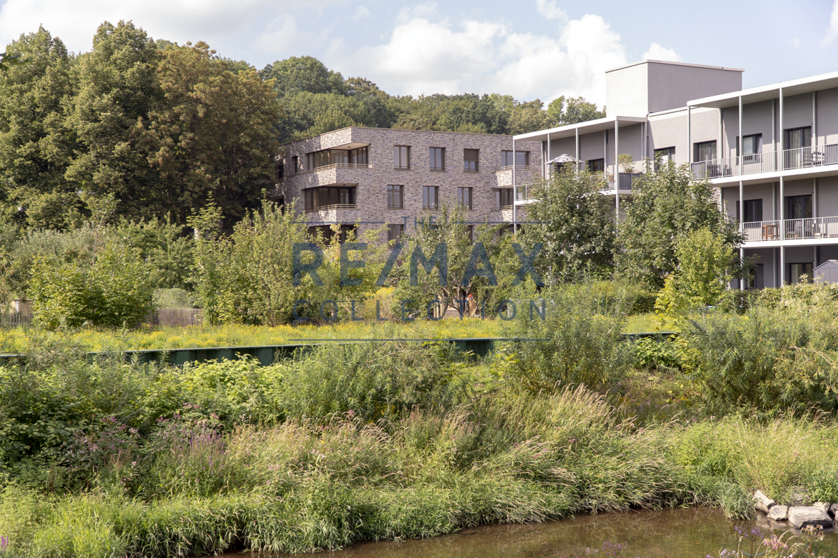 Die besondere, etwa 99 m² große 3-Zimmer-Wohnung bringt alles mit, was man für eine nachhaltige Zukunft braucht. So überzeugt der moderne und durchdachte Grundriss mit einem großen Ess- und Wohnbereich und anliegender überdachter Loggia. Aber auch der Echtholzparkettboden, mit integrierter Fußbodenheizung, oder die übergroßen Holz-Aluminium-Fenster sorgen für ein stimmiges Wohngefühl. Elektronisch steuerbare Außenjalousien können die sonst so lichtdurchfluteten Fenster optimal abdunkeln und somit auch einen 100 % Sichtschutz garantieren.