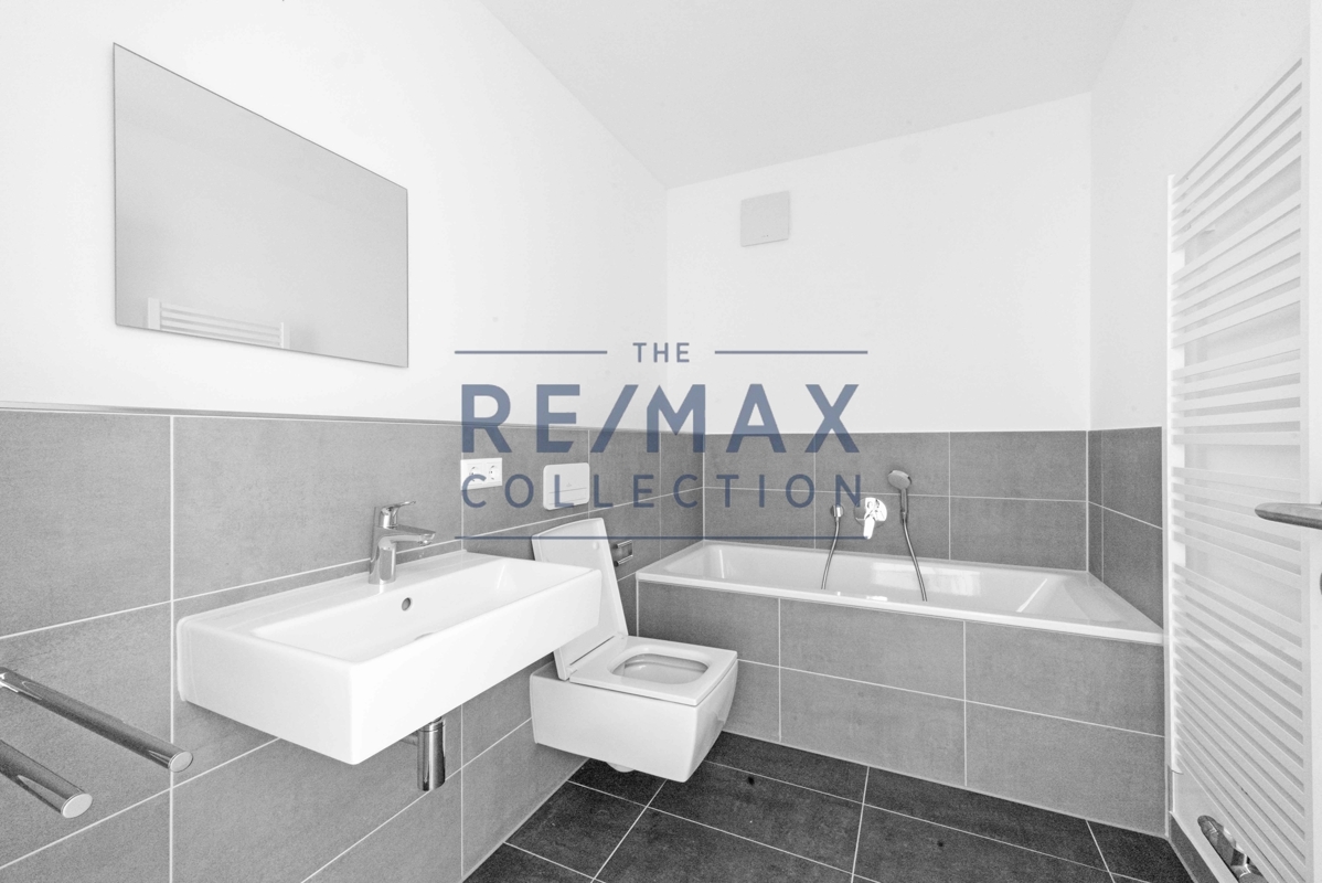 In den beiden Badezimmern müssen keine Abstriche gemacht werden. So gibt es neben Handtuchtrocknern, einer Wanne und einer bodentiefen Dusche ebenfalls Badkeramiken von Villeroy & Boch und die Armaturen von hansgrohe. Das Bad wurde inmodernen Grau gefliest, was dieses nicht nur modern, sondern auch funktionell und ästhetisch gestaltet. Insgesamt versprüht die Wohnung durch Ihre Ausstattung und Haptik dezenten Luxus.