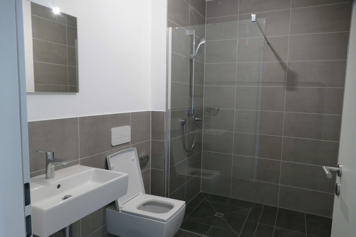 In den beiden Badezimmern müssen keine Abstriche gemacht werden. So gibt es neben Handtuchtrocknern, einer Wanne und einer bodentiefen Dusche ebenfalls Badkeramiken von Villeroy & Boch und die Armaturen von hansgrohe. Das Bad wurde inmodernen Grau gefliest, was dieses nicht nur modern, sondern auch funktionell und ästhetisch gestaltet. Insgesamt versprüht die Wohnung durch Ihre Ausstattung und Haptik dezenten Luxus.