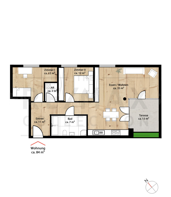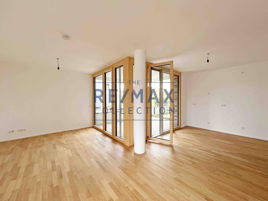 Im Erdgeschoss befindet sich Ihre neue 3-Raum Wohnung. Diese bringt mit über 84 m² Wohnfläche, 2 gut geschnittenen Zimmern und einem großen offenen Koch-, Ess- und Wohnbereich alles mit, was es zum perfekten Wohnen benötigt. Die Räume sind alle mit Echtholzparkettboden und Fußbodenheizung ausgestattet, welche eine völlig eigene, nachhaltige Wohlfühlatmosphäre mitbringen. Übergroße Holz-Aluminium-Fenster bringen viel Tageslicht in die Räume, was an sonnigen Tagen die Beleuchtung im Innenraum (fast) überflüssig macht. Elektrische Außenjalousien können die Fenster optimal abdunkeln und gleichzeitig einen 100-prozentigen Sichtschutz garantieren.